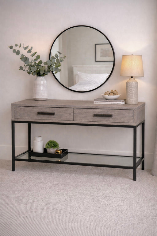 The Wilton console table features a dual drawer set a top of a dark bronze metal frame. The glass shelf sits neatly within the frame - the perfect ...