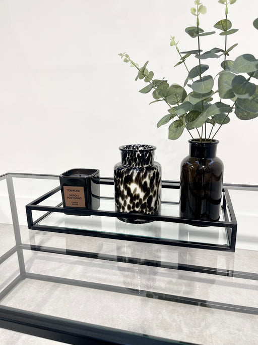 With it’s clear class surface and sleek metal frame, our decorative tray is the perfect addition to your coffee table.